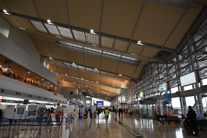 新潟空港 その1![]() 名古屋から飛んできたFDAの10号機は、新潟に着陸後30分ほどで 新千歳に向かって飛び立ちます。 その便にすぐまた乗るのですが、この空港では一旦制限エリアの外に出ないといけません。 写真はターミナルビル1階の航空会社カウンター前から東を見たところ。 2階の窓のあるところは喫茶「海堂」です。 その2 ![]() 1階の中央部「センタープラザ」に、 出発ロビーのある2階へ続くエスカレーターと階段があります。 ちょっとわかりにくいですが、階段と2階の手すりの下にイルミネーションが設置されています。 |