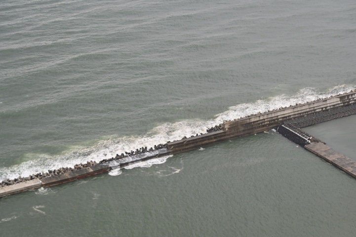 新千歳へ その16![]() 空港北の日本海上にある防波堤。 その17 ![]() 防波堤の内側にオイルフェンスのようなものが浮かんでいます。 その18 ![]() 波が防波堤を越えています。 その19 ![]() 防波堤の西端。 その20 ![]() 離陸後右旋回して、右の窓から幸いにも空港のほぼ全景が見えました。 滑走路の陸側(南)に誘導路と旅客ターミナルが位置しています。 この空港には珍しく交差滑走路があります。 |