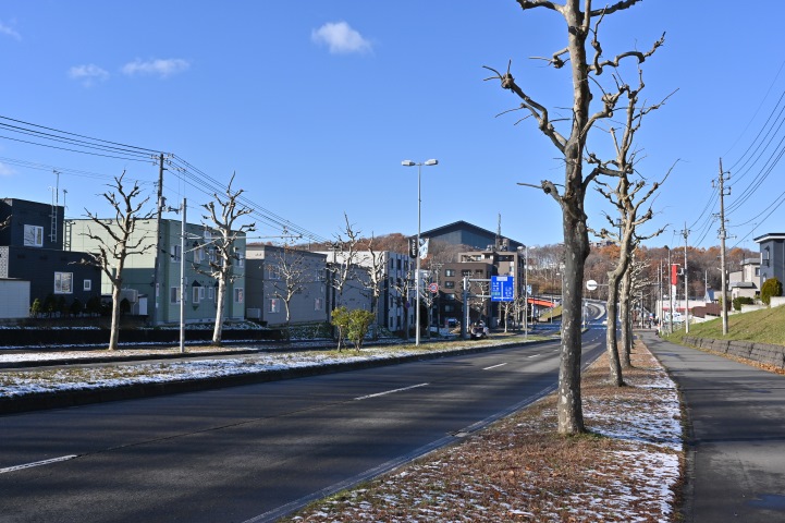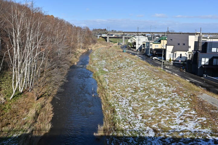 Fビッレジへ その1![]() 駅の西口からすぐにある広い道路を北上します。 奥の集合住宅は北広島北進町(ほくしんちょう)団地。 斜面に雪が残っています。 その2 ![]() 道路の奥に「エスコンフィールドHOKKAIDO」の屋根が見えます。 その3 ![]() 道路は川を渡って北西に延びます。 その4 ![]() 輪厚川(わっつがわ)を渡ります。 ここの河原にもまだらに雪が残っています。 奥に見える高架はJR千歳線。 その5 ![]() Fビレッジの手前にある北海道北広島高校。 |
