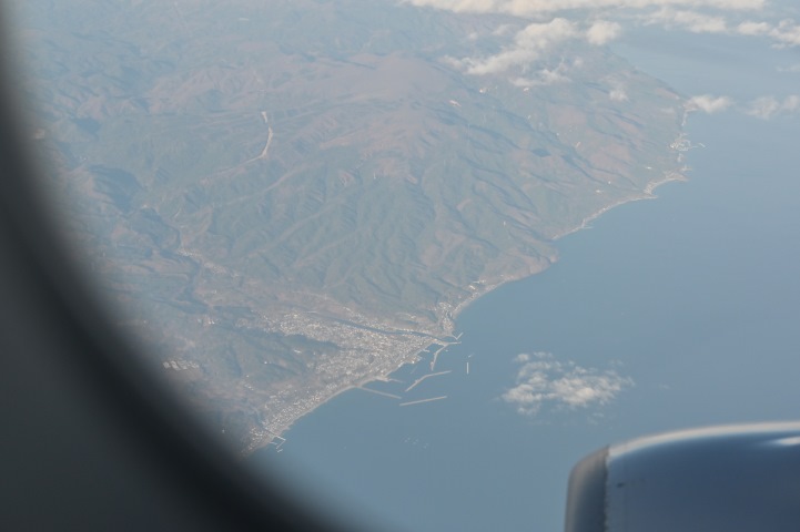 仙台へ その21![]() むつ市大畑町(おおはたまち)。 大畑川河口の手前(南)に大畑漁港があります。 その22 ![]() 同じくむつ市大畑町。 写真中央右上に燧岳(ひうちだけ;781m)。 その23 ![]() 恐山(おそれざん)のカルデラ湖である宇曽利山湖(うそりやまこ)。 湖岸の右(北)の白いところが有名な霊場のあるむつ市田名部(たなぶ)。 その24 ![]() 写真中央下に釜臥山(かまふせやま;878m)。 頂上に空自のレーダーサイトがあります。 山の手前はむつ市大湊(おおみなと)。 その25 ![]() 大湊港。 港の奥(西)がむつ市大湊町(おおみなとちょう)。 |
