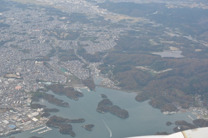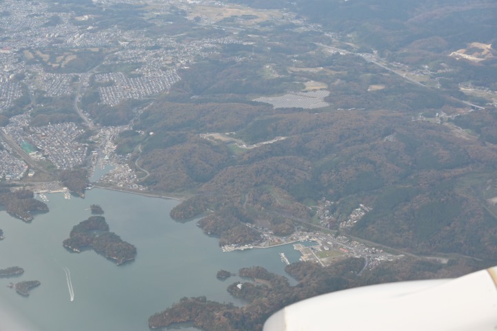 仙台へ その121![]() 写真中央の住宅地が宮城郡利府町しらかし台。 住宅地の左(南)に工業流通団地が隣接しています。 その122 ![]() 松島湾上空に出ました。 写真中央右下に浜田(はまだ)漁港。 その内陸側にJR仙石線(せんせきせん)陸前浜田(りくぜんはまだ)駅があります。 住所は宮城郡利府町赤沼(あかぬま)。 その123 ![]() 写真中央の須賀(すか)漁港の左(南)が塩竃市青葉ケ丘(あおばがおか)。 海に近いところをJR仙石線と国道45号が通ります。 写真中央下が岩井島(いわいじま)。 その124 ![]() 写真中央下の海に囲まれた町が塩竃市新浜町(しんはまちょう)。 住宅地と産業地区の間に「新浜町公園」があります。 その125 ![]() 写真中央左下に仙台塩釜港塩釜港区。 その奥にJR仙石線本塩釜(ほんしおがま)駅と「イオンタウン塩釜」があります。 住所は塩竃市海岸通(かいがんどおり)。 |